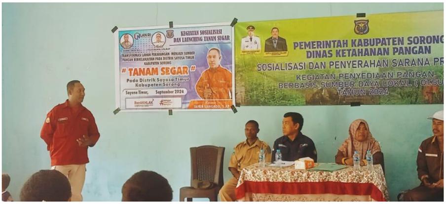 Dinas Ketahanan Pangan Kabupaten Sorong bersama Distrik Sayosa Timur menggelar sosialisasi dan penyerahan sarana produksi program "Tanam Segar" (Transformasi Lahan Pekarangan Menjadi Sumber Pangan Berkelanjutan) di Kampung Sailala, 3 Oktober 2024. Kegiatan ini dihadiri perwakilan pemerintah distrik, tim inovasi, penyuluh pertanian, serta masyarakat penerima manfaat termasuk kepala keluarga dan ibu rumah tangga. Melalui sosialisasi interaktif, dipaparkan manfaat program dalam mendorong kemandirian pangan rumah tangga dan pemanfaatan lahan pekarangan secara produktif. Perwakilan Dinas menekankan bahwa "Tanam Segar" bukan sekadar pembagian bibit, tapi upaya mengubah perilaku masyarakat menuju pola konsumsi sehat berbasis hasil pekarangan sendiri. "Ini membangun kemandirian pangan mulai dari tingkat rumah tangga," tegas narasumber tim pelaksana. Secara simbolis, diserahkan langsung sarana produksi seperti bibit sayuran, media tanam, dan pupuk organik kepada warga. Tim inovasi bersama penyuluh lokal akan melakukan pendampingan dan monitoring berkala untuk memastikan keberhasilan program. Sebagai inisiatif prioritas pembangunan Distrik Sayosa Timur 2024 yang telah diatur melalui SK Kepala Distrik, sosialisasi ini menjadi langkah awal strategis mewujudkan ketahanan pangan berkelanjutan di tingkat komunitas